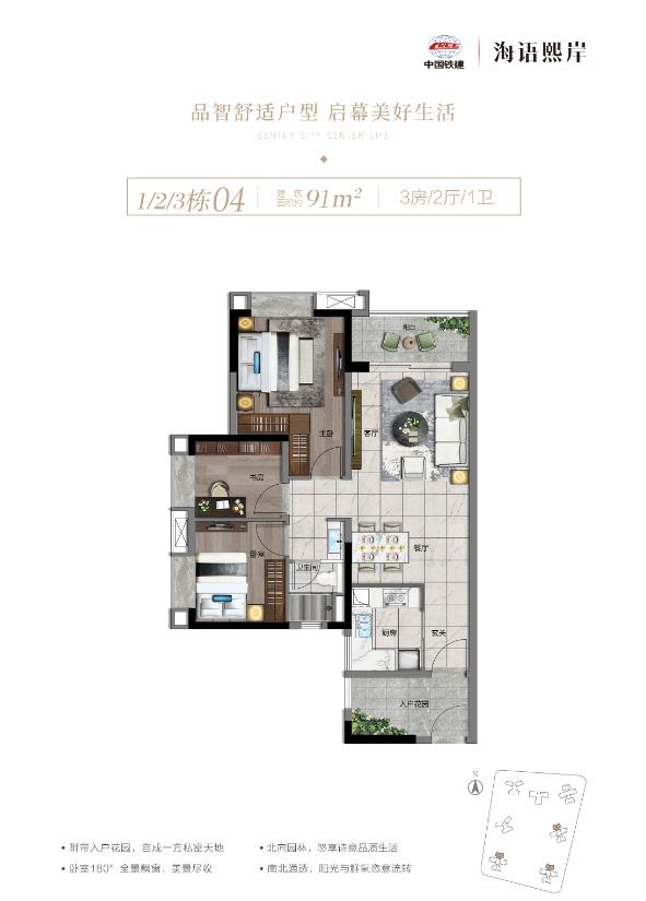 中国铁建海语熙岸项目位于广州市南沙区凤凰大道与黄阁南路交汇处,地处南沙的中心城区蕉门河板块,是南沙第三产业汇聚的主要区域,同时紧邻明珠湾起步区块。项目北面为凤凰湖公园与大山乸森林公园,高层住宅南面海景。全盘共21栋高层洋房,总占地171248㎡,规划建筑面积790347㎡,总户数3680户,绿化率35%。项目分五期开发,第一期为7栋平层住宅;第二期为5栋小户型住宅;第三期为4栋平层住宅;第四期为6栋大户型住宅;最后第五期为商业用地的开发,即凤凰广场,为大型商业综合体,包含大型商业MALL、5A甲级写字楼、酒店式公寓等。