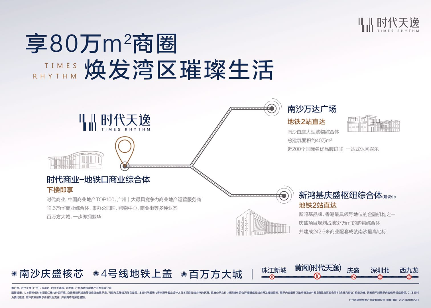 【商业】时代天逸自带约12.6万㎡商业综合体,周边约40万㎡大型购物综合体南沙万达、37万㎡新鸿基庆盛枢纽综合体环伺。