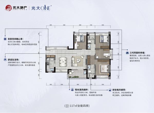 2.【项目 】光大ONE+涵盖办公、住宅、商业等复合型功能的综合体,是集超高层地标写字楼、高层写字楼、高层住宅、独栋商业街区为一体的综合体项目。