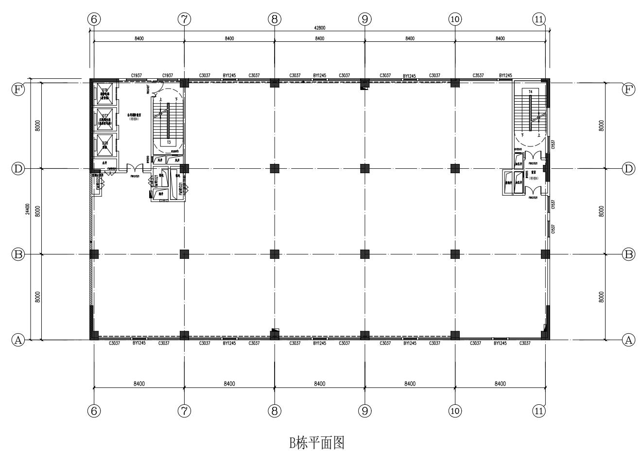 11: 柱间距8*8米,格局方正
