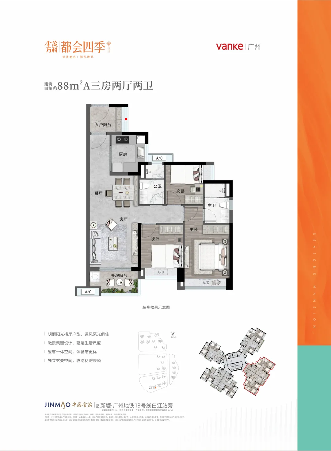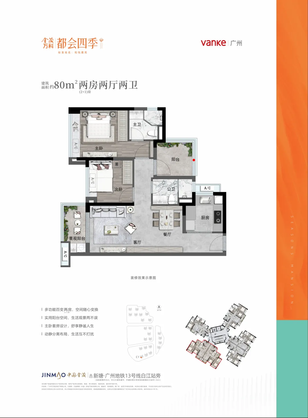【产品 】在售建面约80-133㎡三至四房,从刚需到改善,一网打尽。部门楼栋户型可瞰江景。