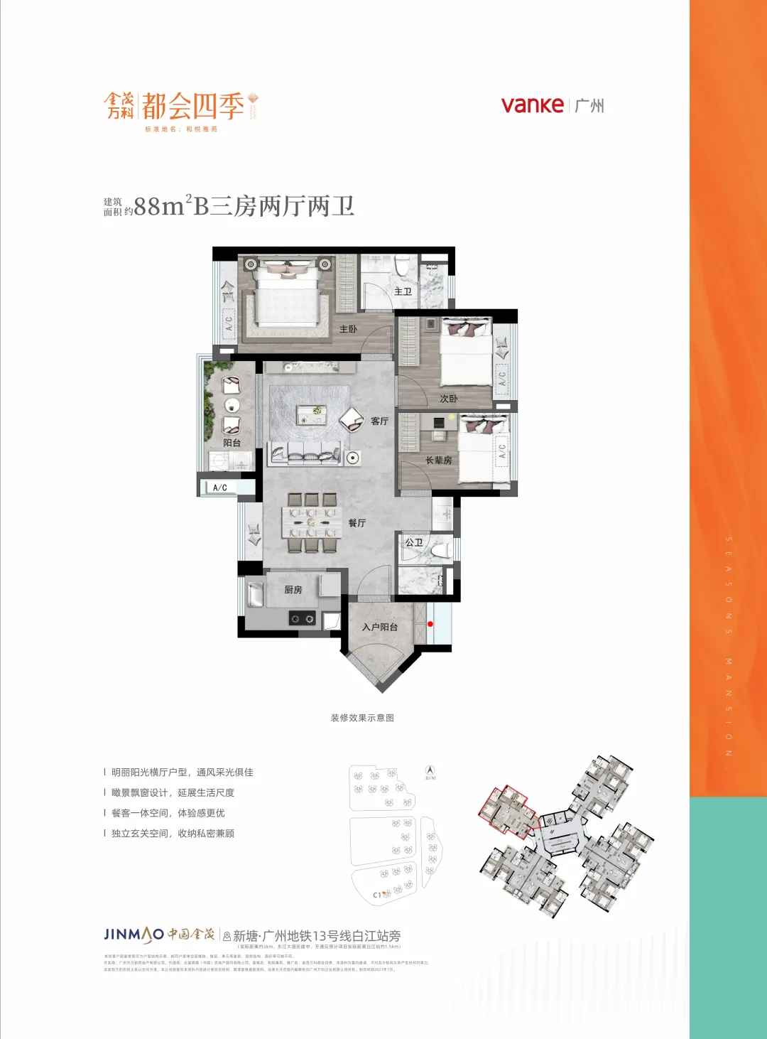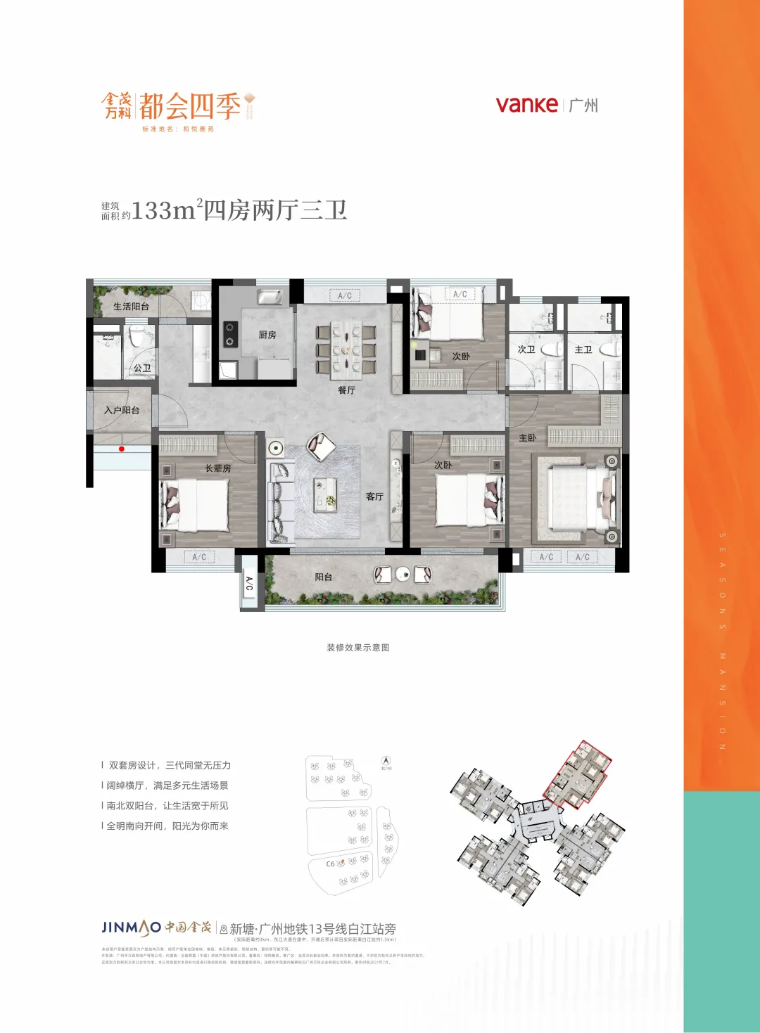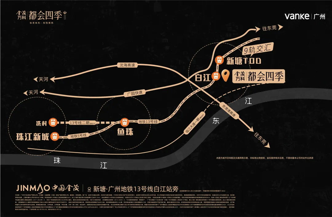【交通 】项目位于地铁13号线白江站旁,1站新塘TOD,2站老黄埔,8站到天河,无需换乘直达天河芯,上班逛街都方便。