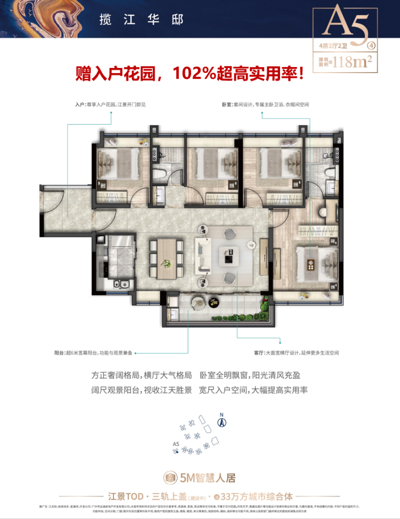 6: 90%+得房率:户户赠入户花园,同样价格多一房,市场罕见!