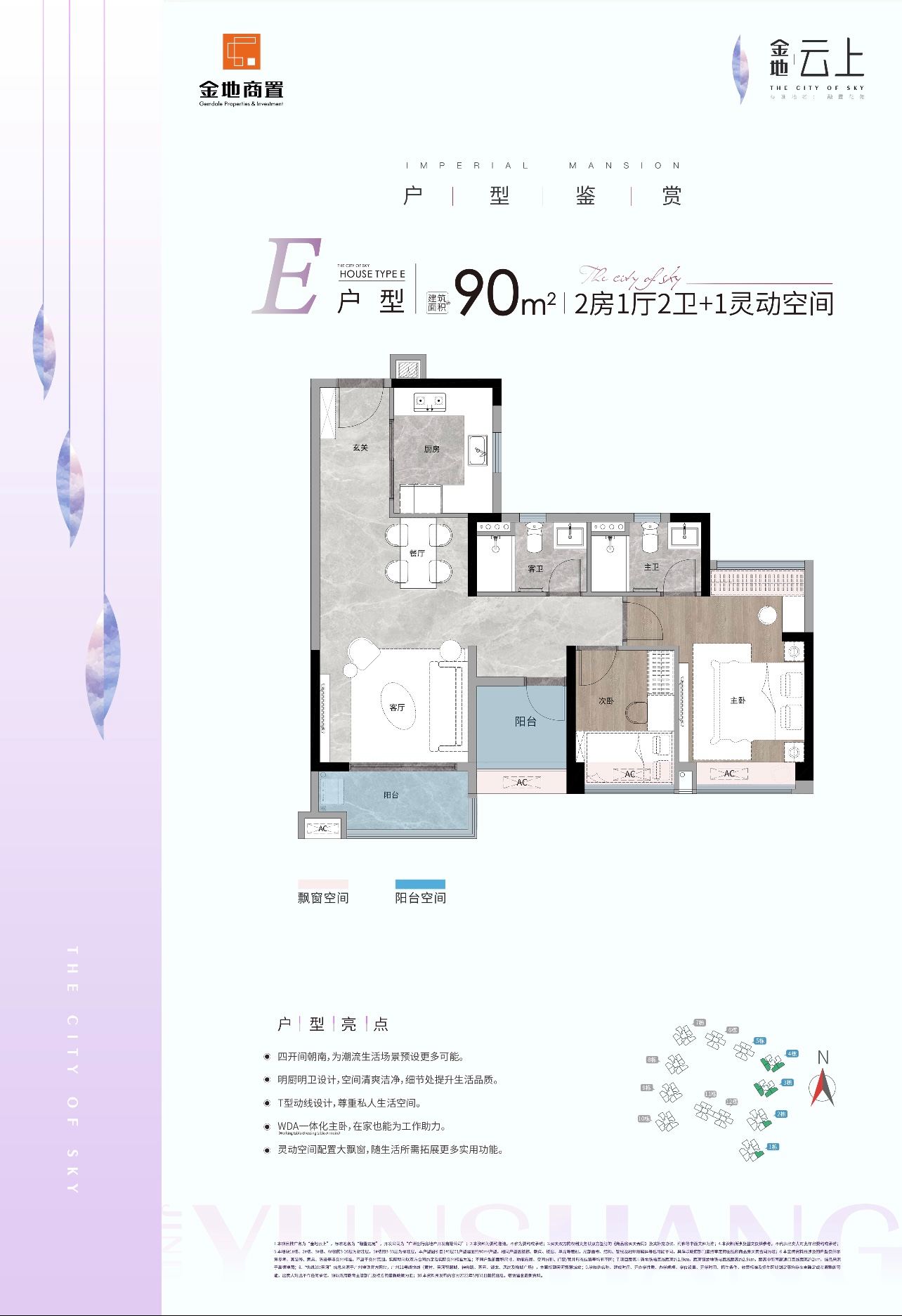 金地云上项目由广州创行房地产开发有限公司精心打造,占地约6.29万㎡,建面约28.9万㎡,由12栋高层洋房组成,合计2296户,项目还自身带约1500㎡的底商,配建了一所24班的公立小学,主力户型为建面约60-104㎡二至三房灵动舒居,菁英活力社区!