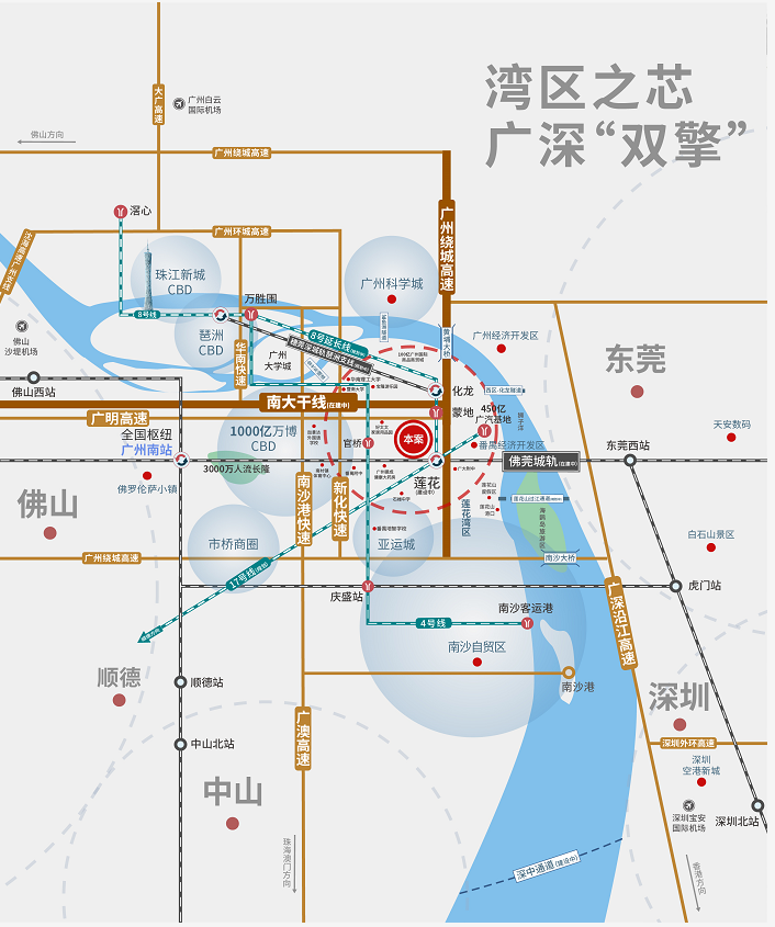 2:便捷交通 | 快速接驳南大干线、新化快速、广明高速!近临8号线东延段蒙地站(规划中),莲花站高铁枢纽,享佛莞城际、穗莞深琶莲支线便捷交通。
