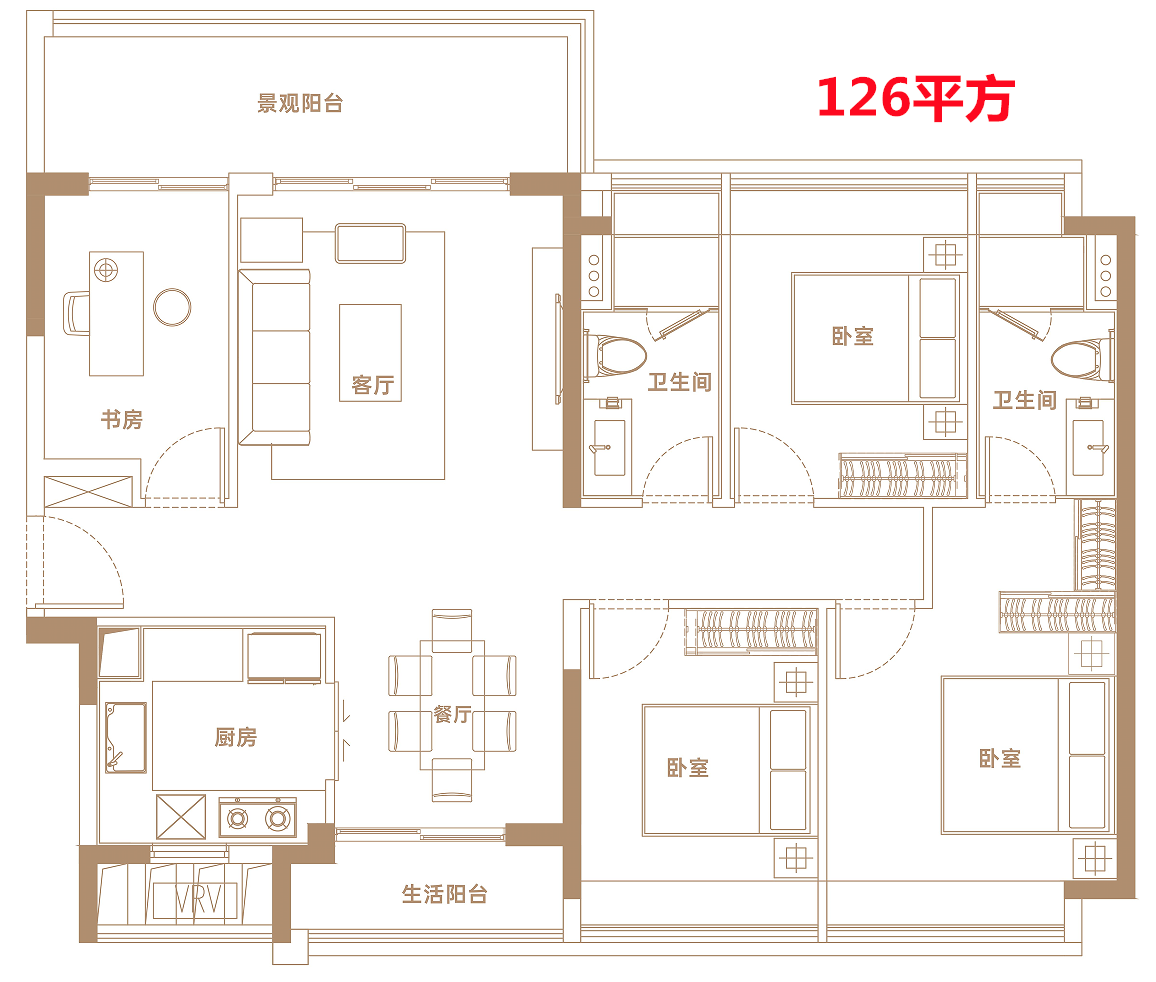 102㎡:俯瞰内外双园景水景江岸四房
