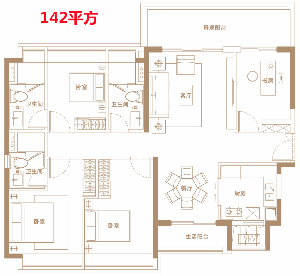 142㎡:岛尖江园双景奢华大平层