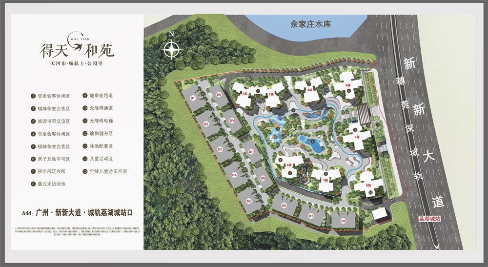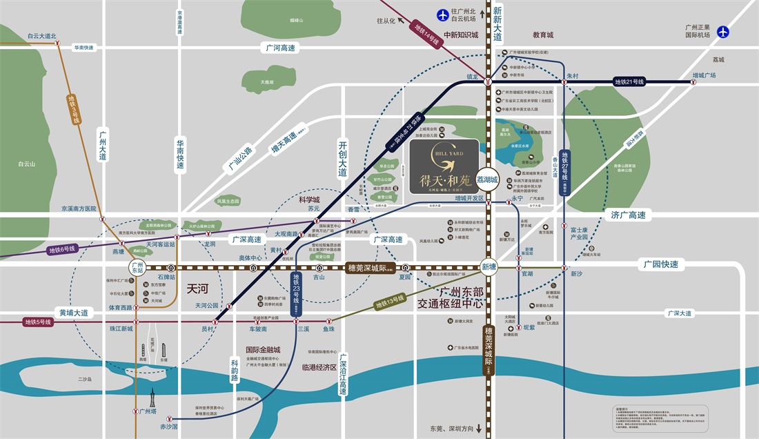 得天和苑为广东得天投资有限公司住宅项目,项目地处增城新新大道,距离穗莞深城轨荔湖城站约200米,紧邻荔湖高尔夫场、千亩余家庄水库和南香山国家森林公园,生态资源丰富,环境优越,打造健康宜居生态品质住区。项目以品质升级、生态升级、产品升级全面定义优越人居新高度,礼献注重生活品质的城市精英。