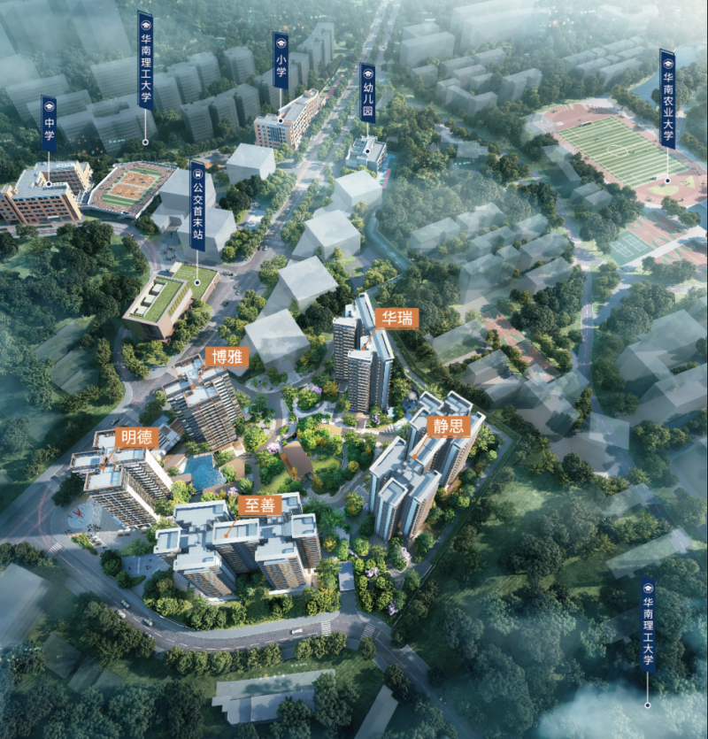 世纪金源·天河源筑位于广州天河东莞庄路(华南理工大学五山校区旁)。 项目位置天生优越,距离珠江新城仅约4.5km,周边四地铁站环绕,出行便捷;多所教育资源丰富,且自带九年一贯制学校;约3公里即享天河“万亿”商圈荟萃太古汇、天环、K11、IGC等超10家地标商场,且自身配置项目约1421㎡东方艺术会所,涵盖约370 ㎡泳池及私宴厅等。 项目约44万m²大体量,涵盖住宅、主题园林、会所、泳池、幼儿园及九年一贯制学校、肉菜市场、公交首末站等。