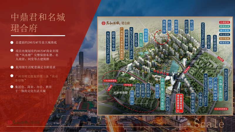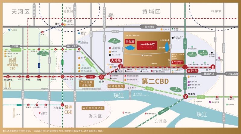【区位 】项目位于老黄埔大沙地片区,紧靠广州鱼珠CBD,其体量约达280万㎡,是集商业、文化、教育、居住为一体的恢弘大城。