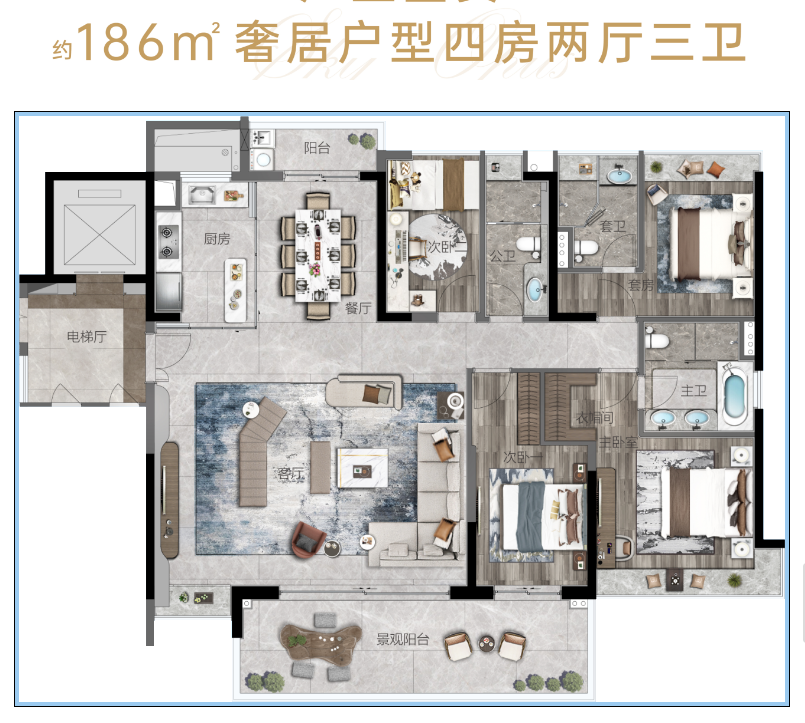 【全南山景奢宅,进阶标杆人居】板式建筑,南北对流,开创式大面宽、大开间、双阳台设计、2T3户低密舒适梯户比、私家电梯入户,尽享尊荣。