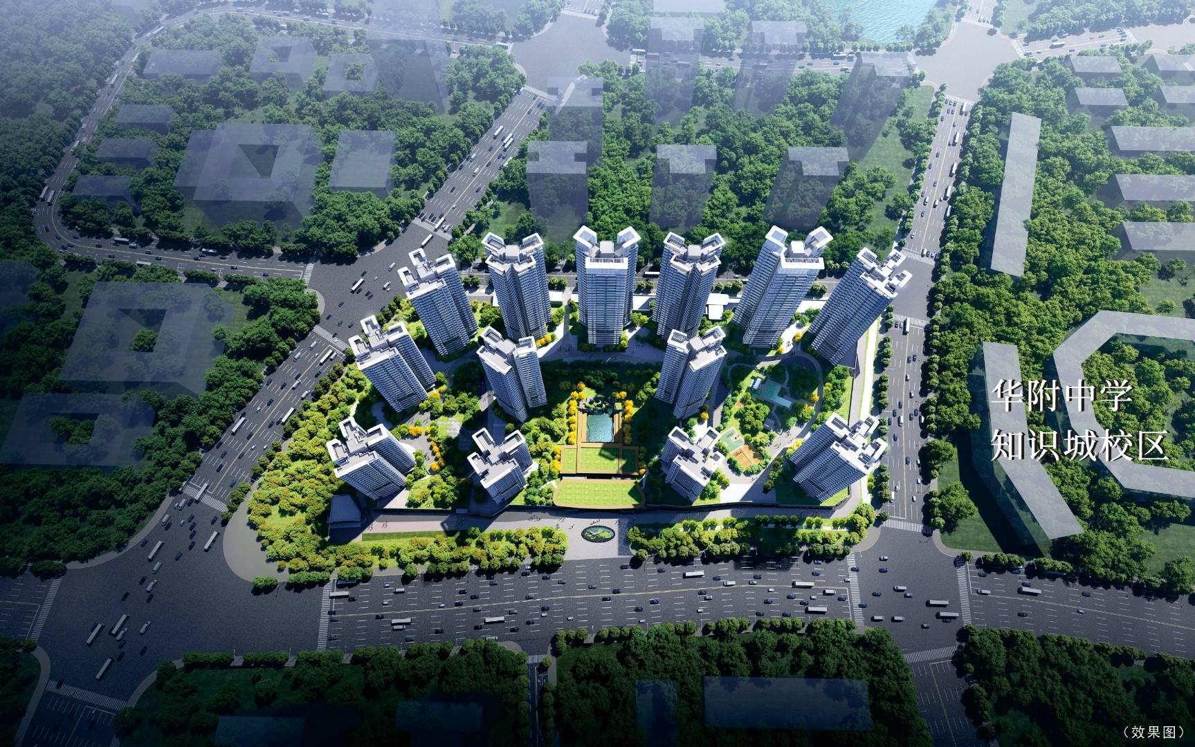项目距离华附知识城校区仅一路之隔(汤兴一路),真正的“目送式”教育环境。华附知识城校区是黄埔区截至目前投资规模最大、技术标准最高的教育建设项目,总投入超28亿。