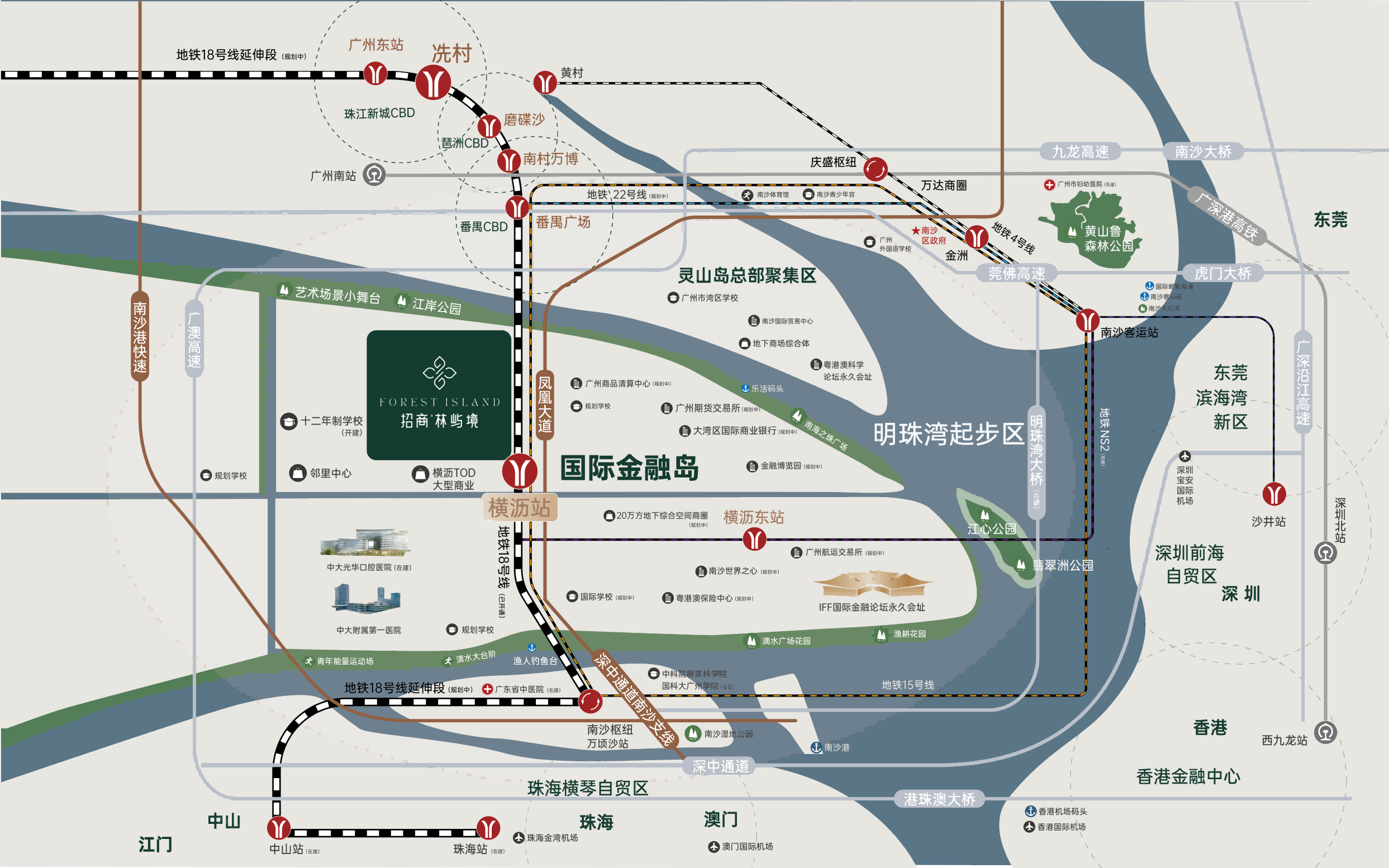 【商业】周边规划有中交汇通中心、横沥TOD综合体等商业设施,未来有望成为岛上的商业中心,满足居民的购物和娱乐需求。