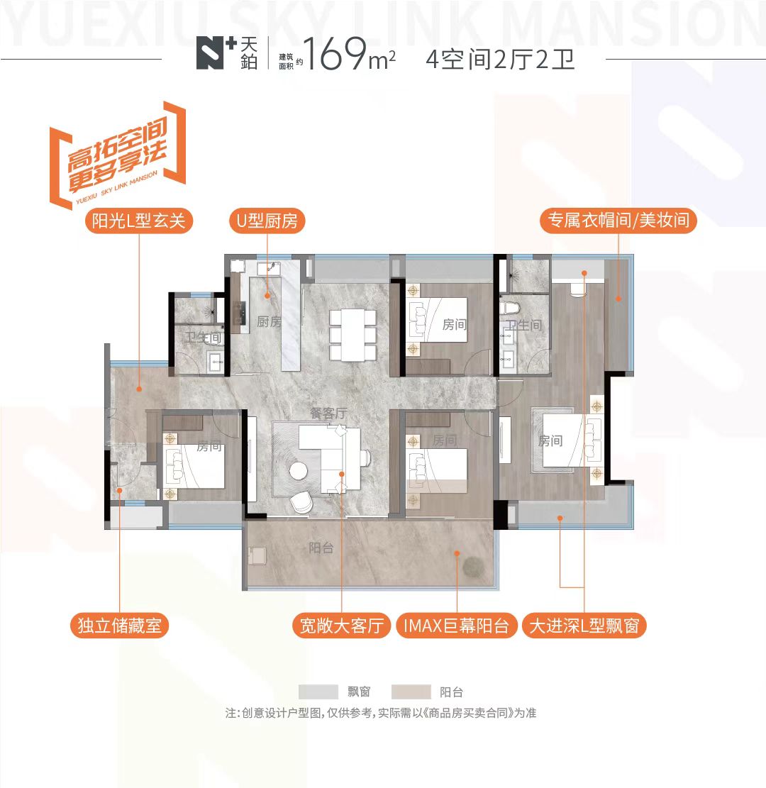 【产品】建面约89-169㎡跃级三至四房,跨界共融共生的多元融合。户型均有LDKB互通,保证舒适通风采光及与家人交流互动空间。板块内采用20%阳台建设比例项目。
