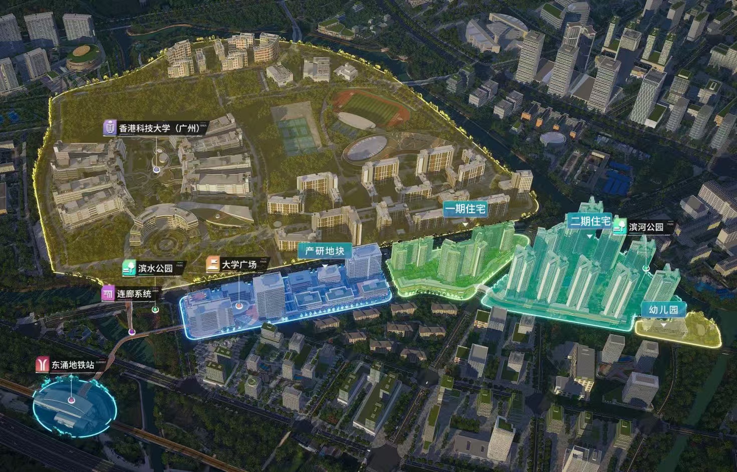 【教育】北侧就是港科大(广州),全球排名TOP34的香港科技大学,南侧约500米是民心港人子弟学校,南沙还引进了广州大学附属朝阳学校、南华工贸高级技工学校(在建中)、华南师范大学粤港澳大湾区教师教育学院等等;