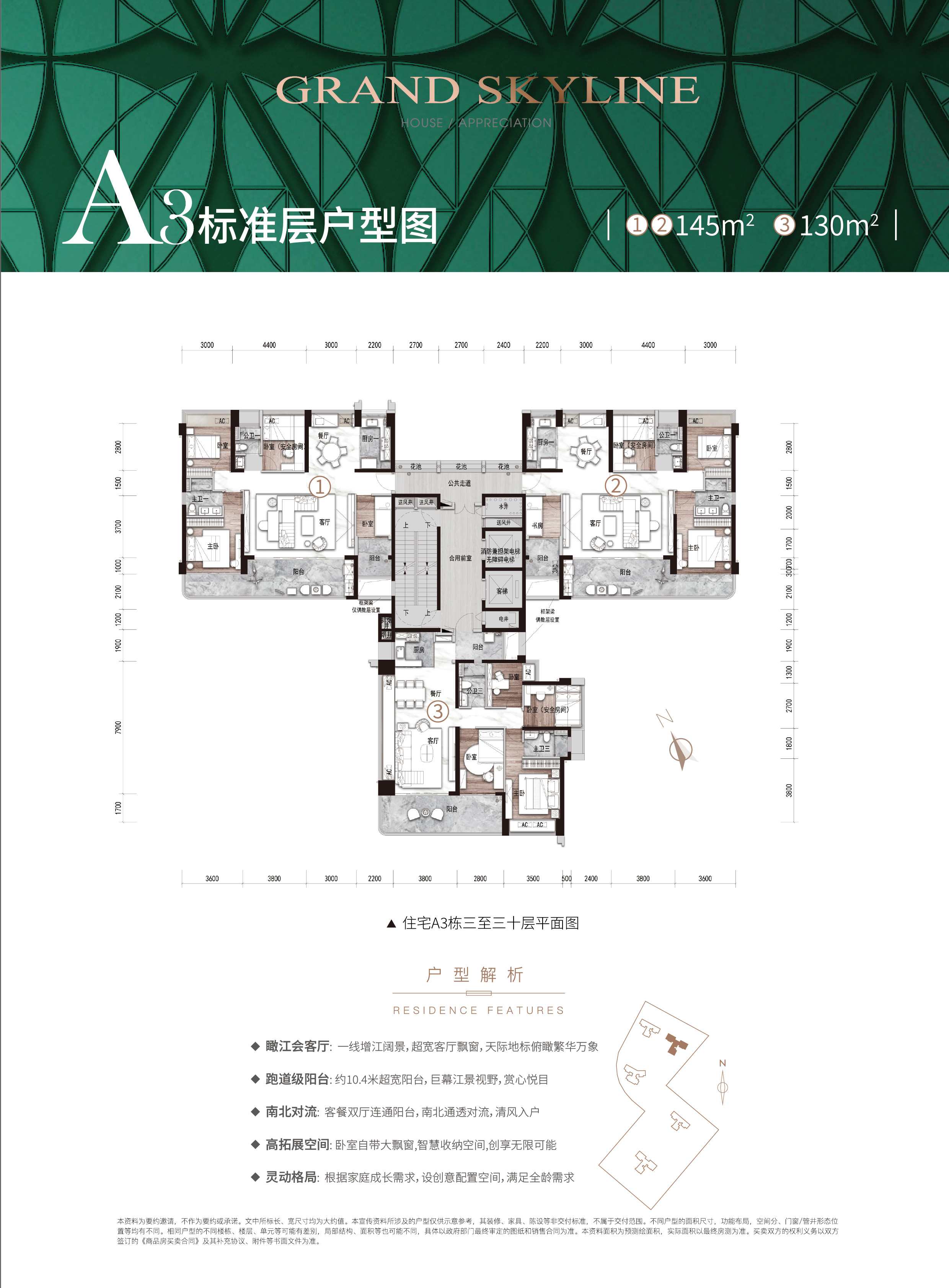 【户型面积】:建面约95-145㎡三至四房