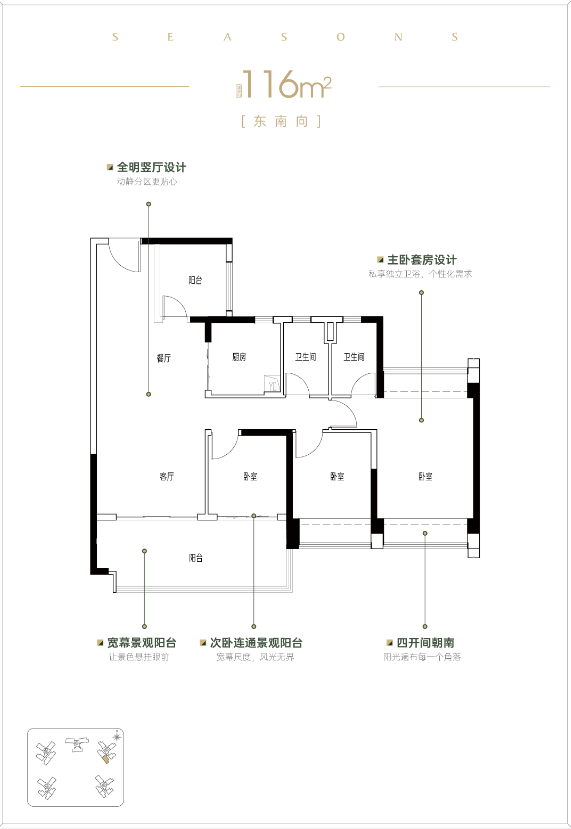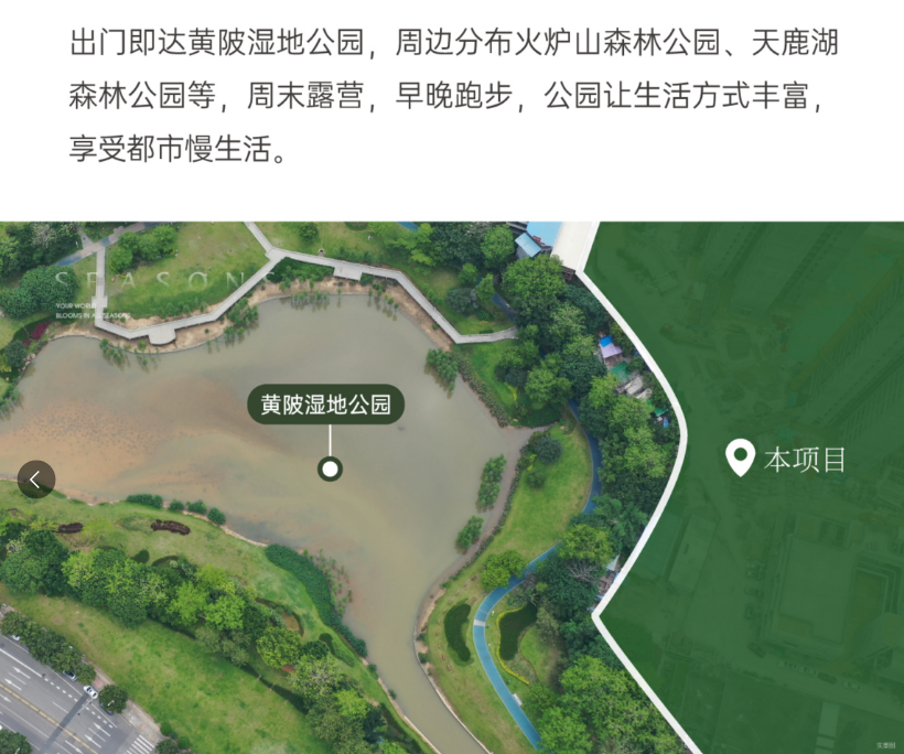 坐北朝南:四季山水位于帽峰山下,整体小区南向朝向规划,保证四季南向采光最大画;