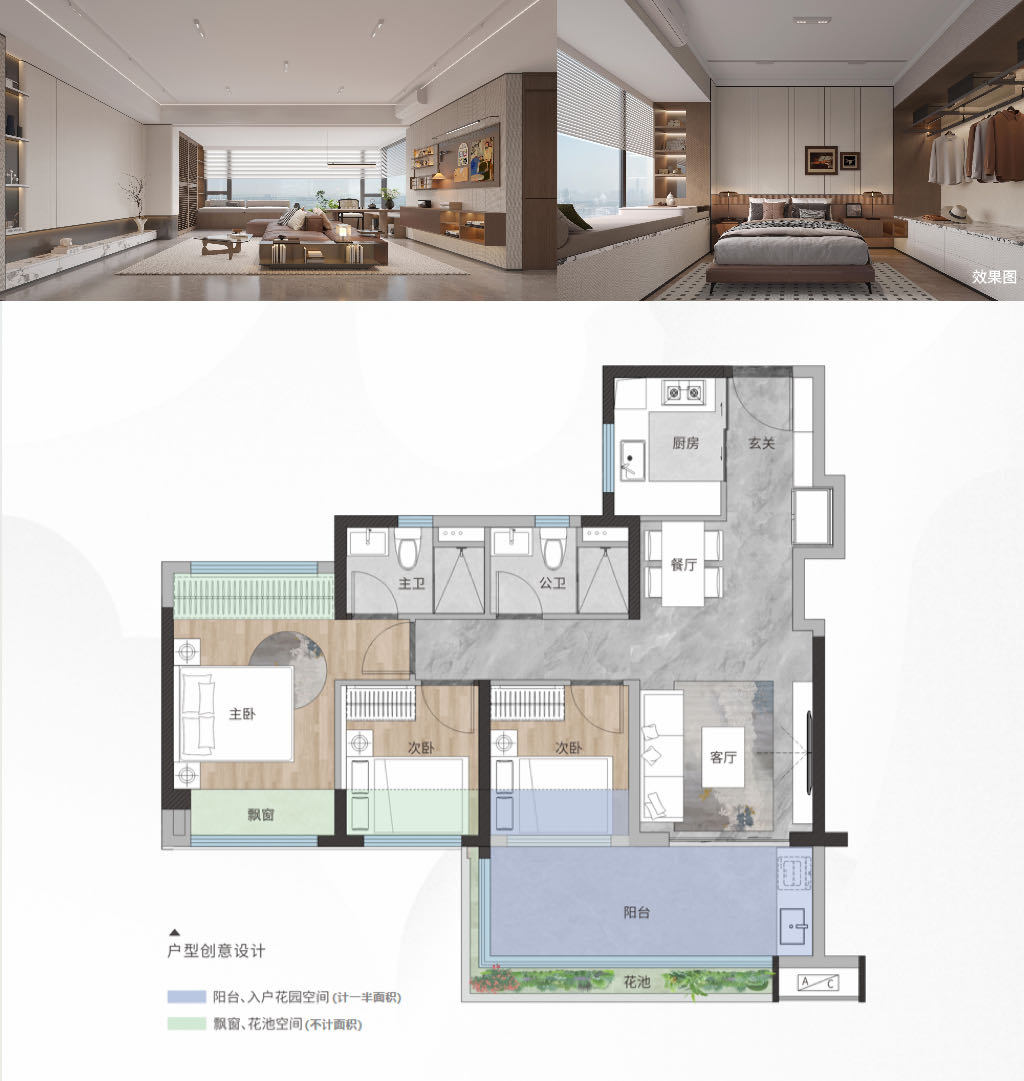 户型:约77-95㎡超100%使用率三至四房