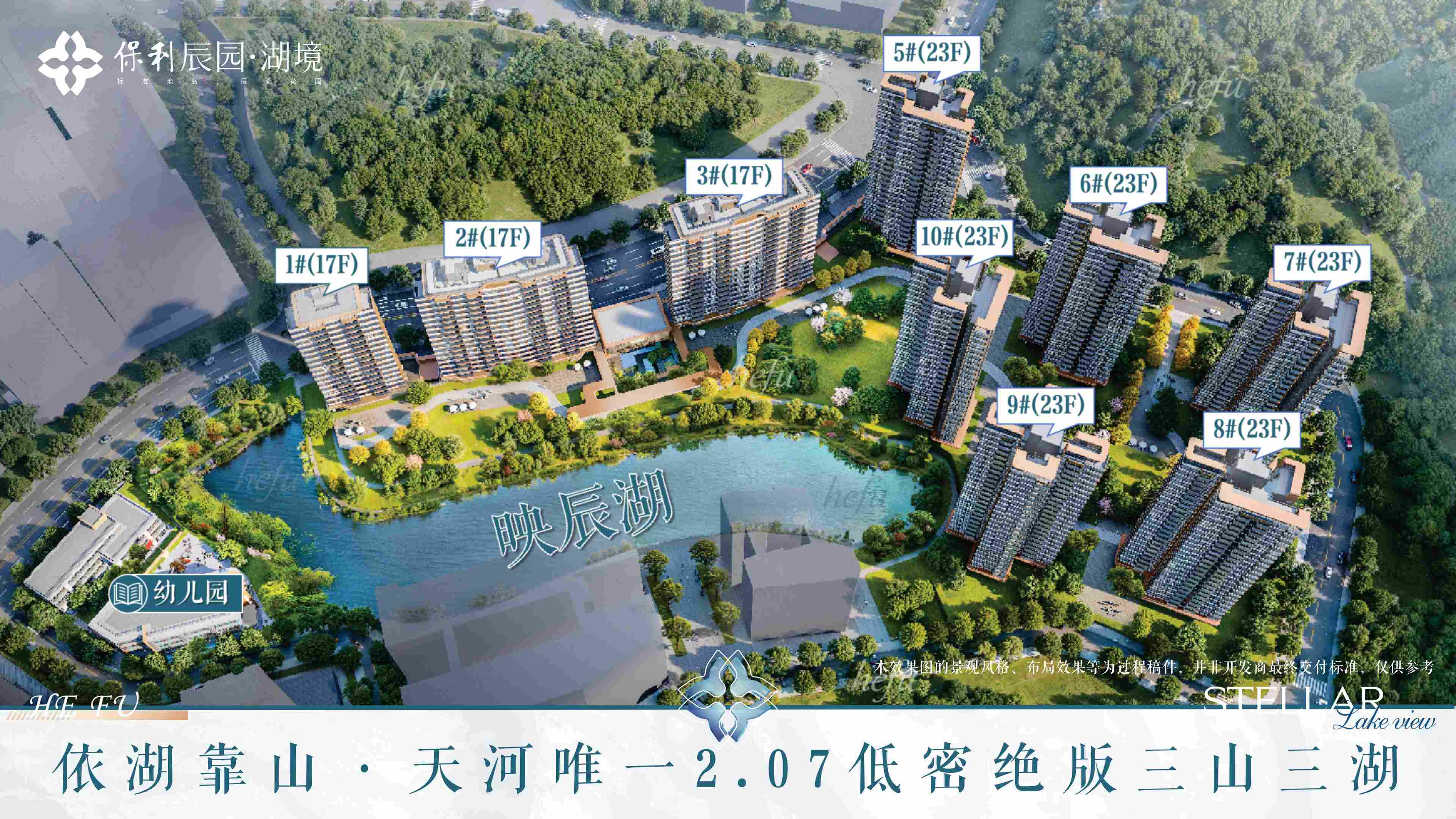 楼下约40米映辰湖,1KM内坐拥太阳湖、月亮湖5.3万㎡浩渺水域,漫步1.9公里湖岸线,三山环伺间。