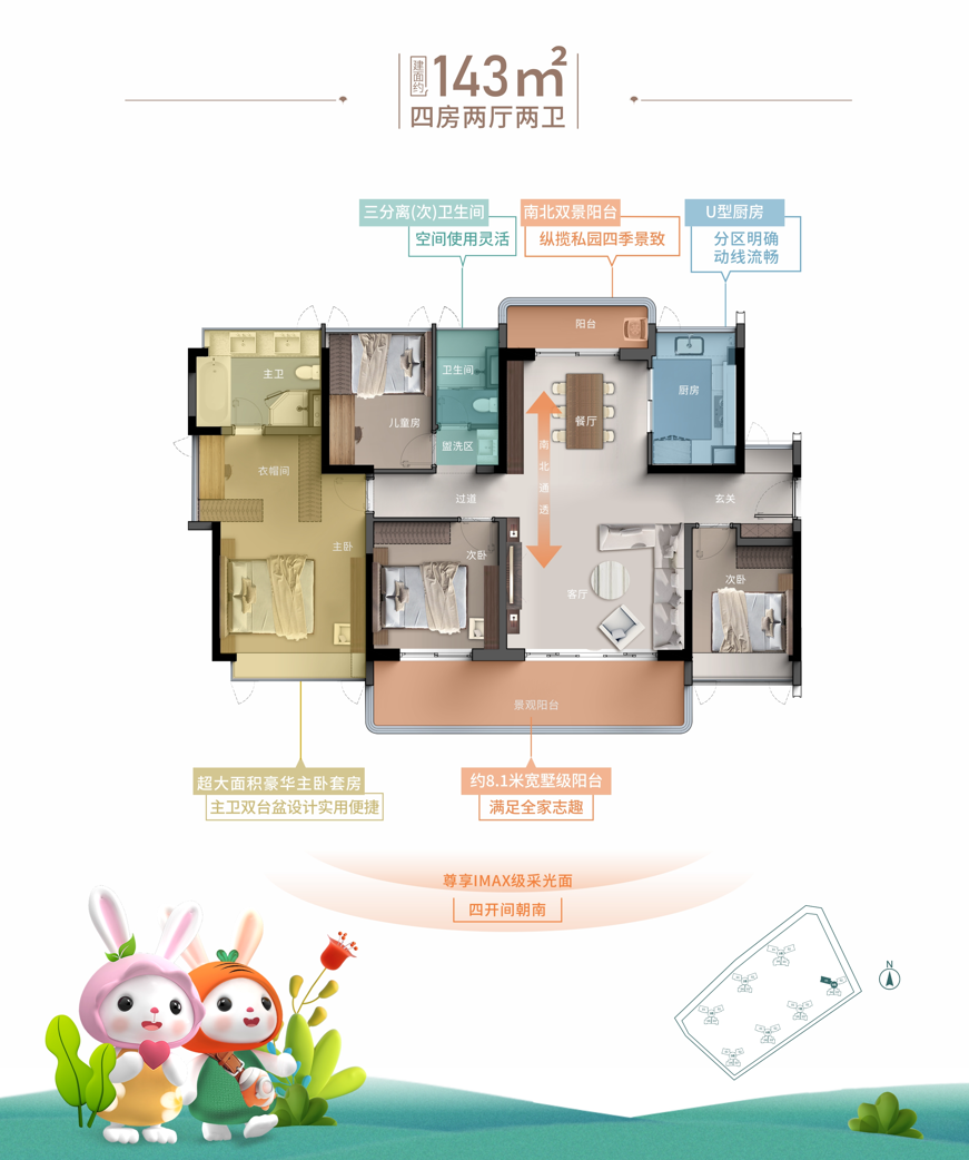 7、两梯四户,3米层高,高赠送约96-143㎡精装全南向三四房