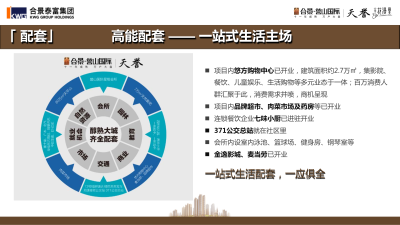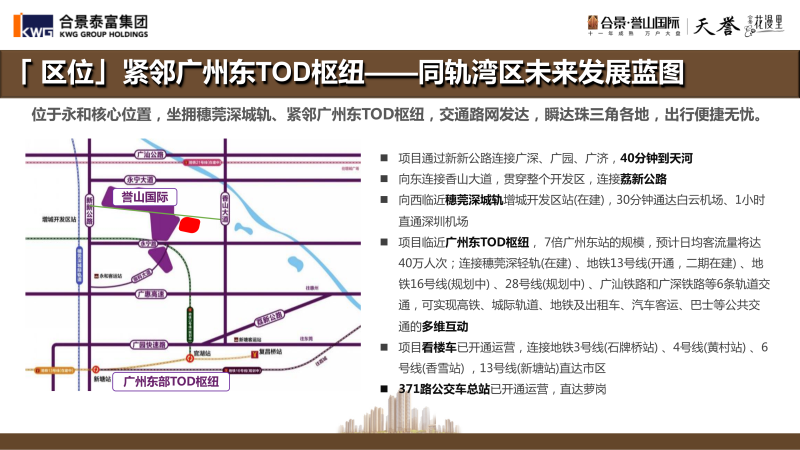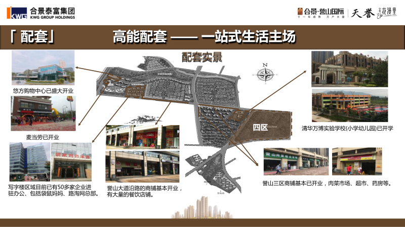 合景誉山国际集会展中心、购物中心、写字楼、高层住宅、多功能会所于一身的综合性大型地产项目,生活配套应有尽有,占地近3000亩的规模和成熟的配套铸造广州东高品质人居生活。开发近11年,目前已超1万业主入住,居住氛围浓厚。