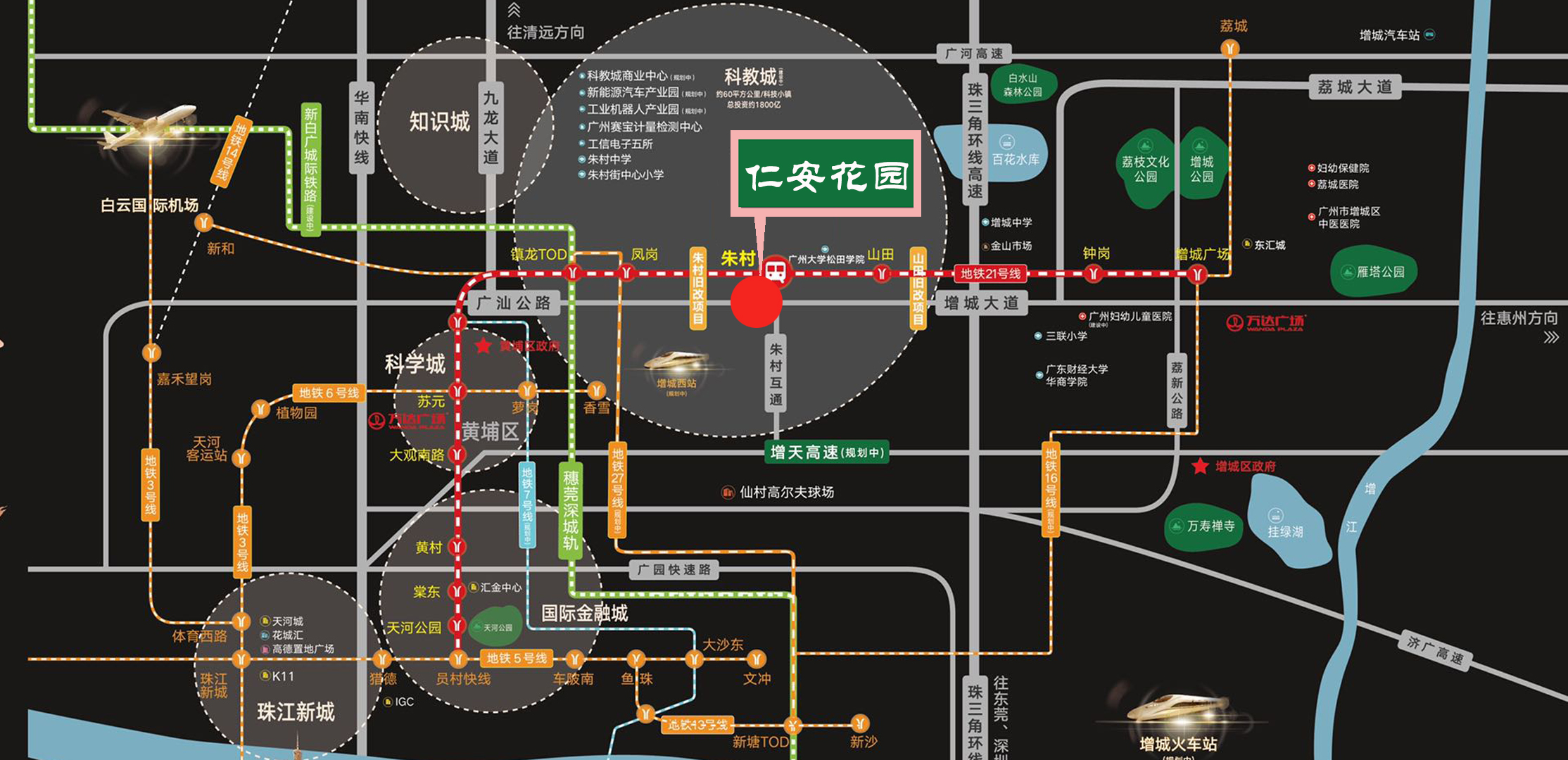 广州教育城品牌幼儿园、朱村镇中心幼儿园,朱村一中、朱村二中、朱村中心小学、广州大学松田学、广州教育城24所品牌专职院校等。
