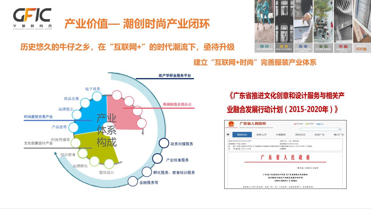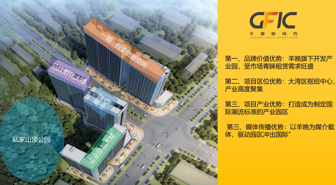 项目自带产业: 通过羊城晚报为媒体载体,结合坤银集团对“中大轻纺交易园”成功打造经验,以潮创设计为原点,形成集时尚发布、版权交易、时尚设计研究、互联网平台管理于一体,锻造出以服装产业链整合为驱动力的文化创意综合体与现代服务业国际时尚总部,引流人才进驻。