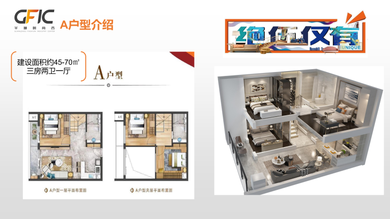 产品特殊优势: 5米层高稀缺产品,每层净高2.4米,接近普通住宅产品,真正买一层送两层。