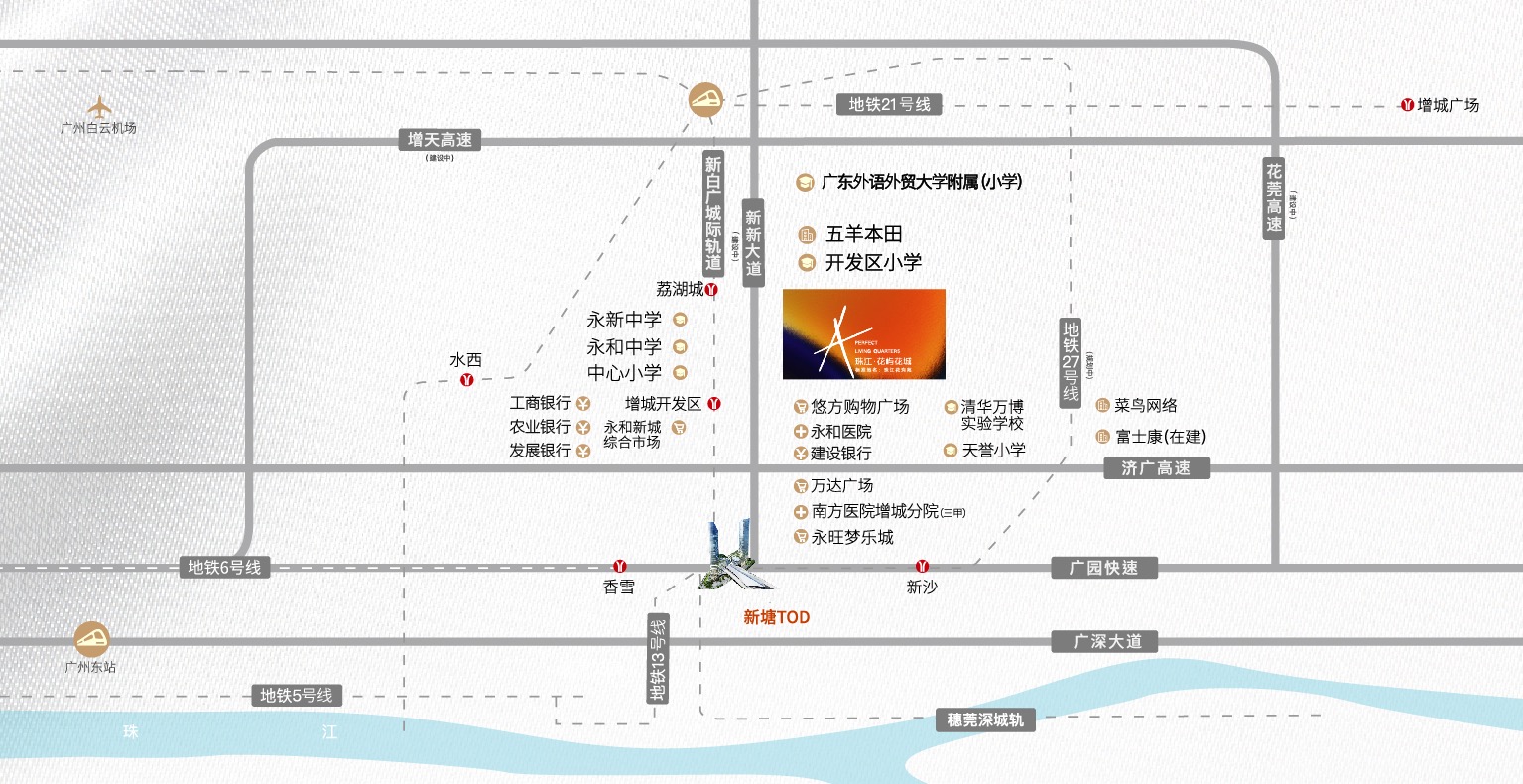 ②珠江·花屿花城雄踞新塘TOD新城,比知识城更近天河,片区价值进一步跃迁。