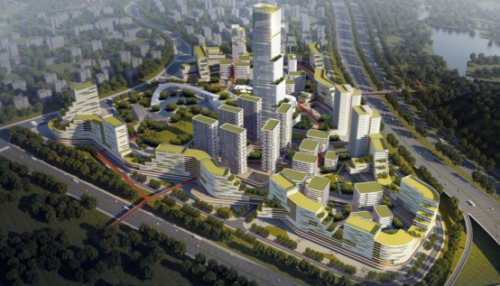 广州国际创新驱动中心,位于环九龙湖总部核心地标建筑群,占地面积约16万㎡,建筑面积约72万方㎡,擎画200米科创摩天新高地,定位为“知识城科创产业助推引擎”,致力于打造涵盖创新研发平台、总部经济办公、高端科技金融和人才服务等产业链全覆盖的,国际一流创新驱动发展及创新资源集聚区,推动环九龙湖总部经济腾飞。
