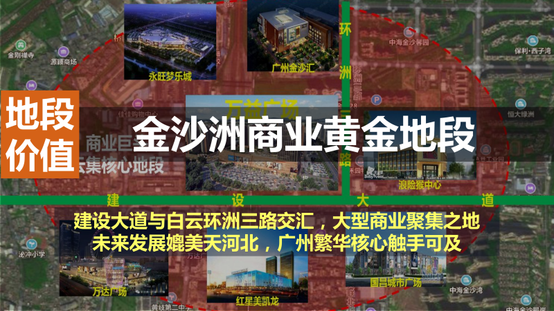 【商圈配套】:自带13万㎡购物中心--万益·金铂天地,打造广佛首座家庭享乐中心,项目两边还有万达广场、国昌广场等