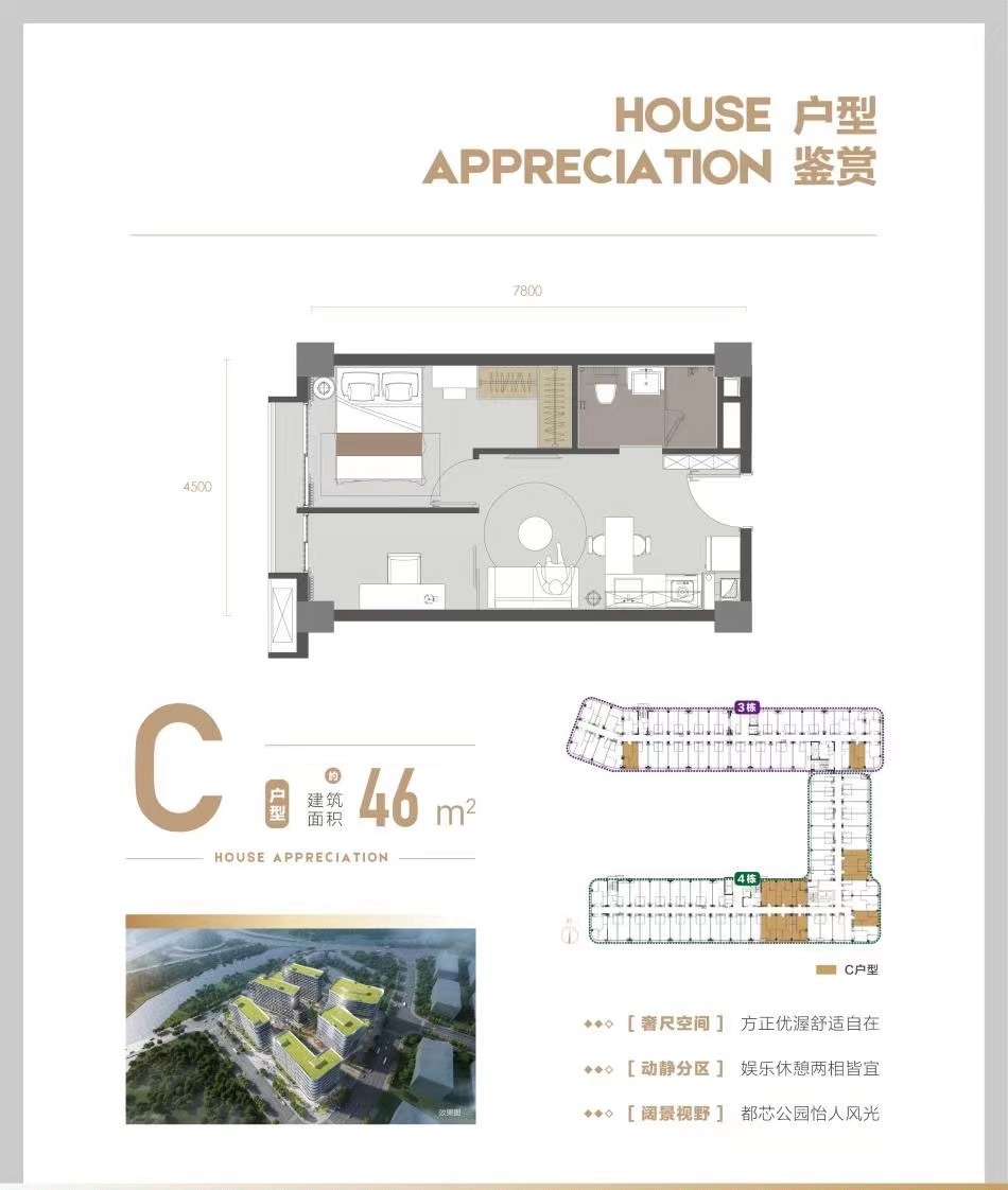在售面积:28-46平方