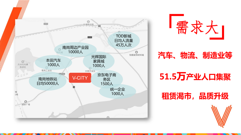 V-city万荟珑寓位于黄埔芯、万达上、地铁旁的城市旗舰综合体。项目占地约8万方,总建面约41万方,致力打造成为黄埔商住标杆,项目规划有shaoppingmall-万达广场,临街商业及精英公寓,主力户型为28方loft双钥匙及35方loft产品,与地铁13号线南岗站无缝接驳,项目位于商业旗舰MALL——万达广场之上。南岗项目拥有城市旗舰配套,坐享城市发展红利,将引领黄埔未来人居新模式。