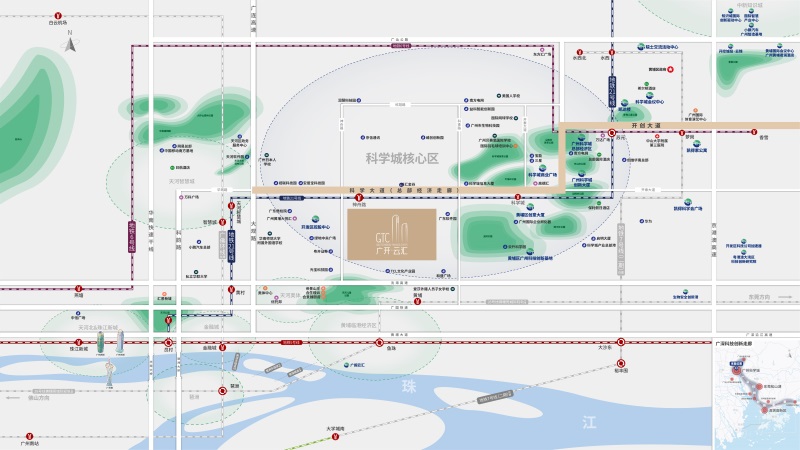 【三公里内八大公园环绕】科学城绿化率约50%,项目约3公里范围内,汇聚了8大公园